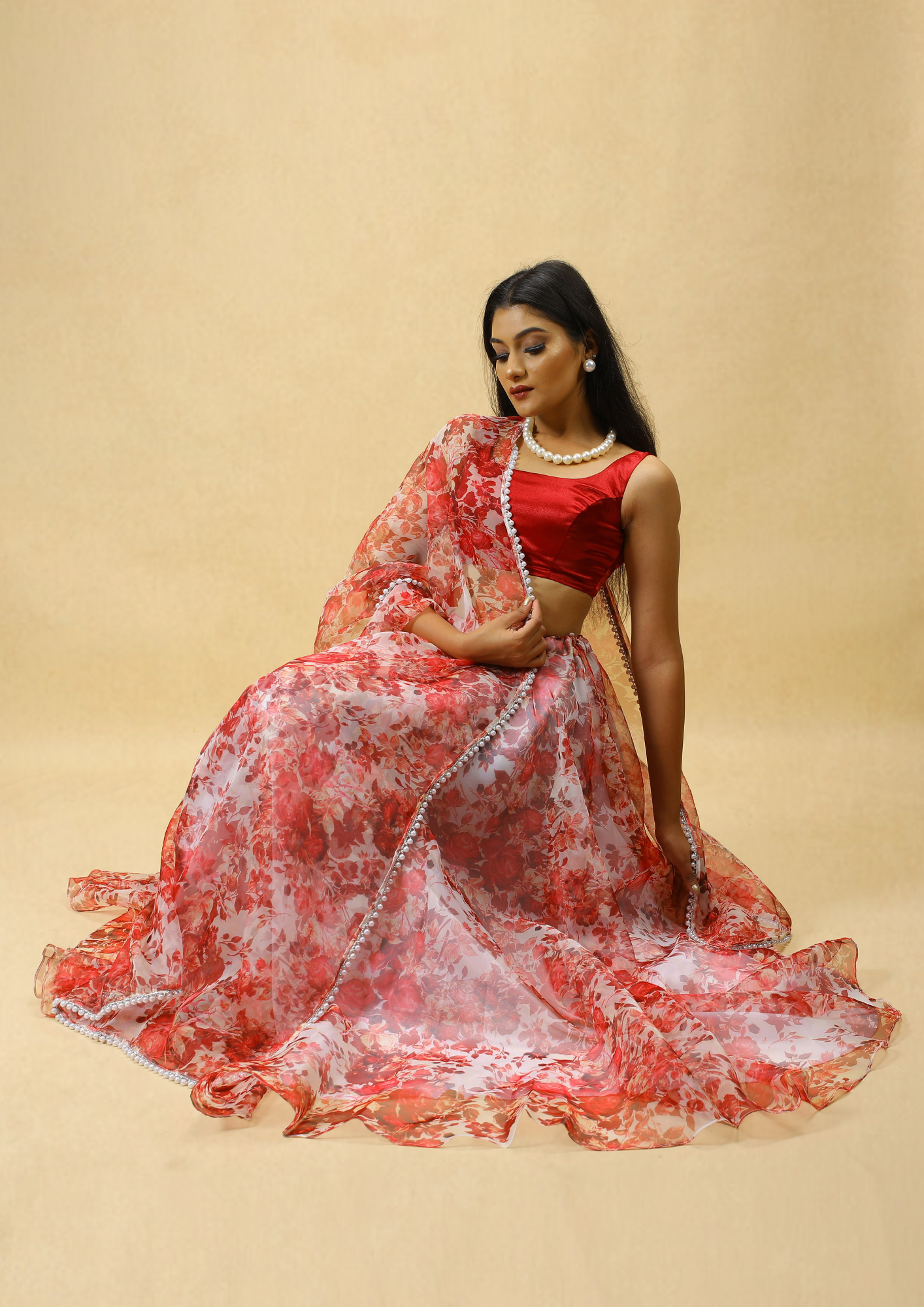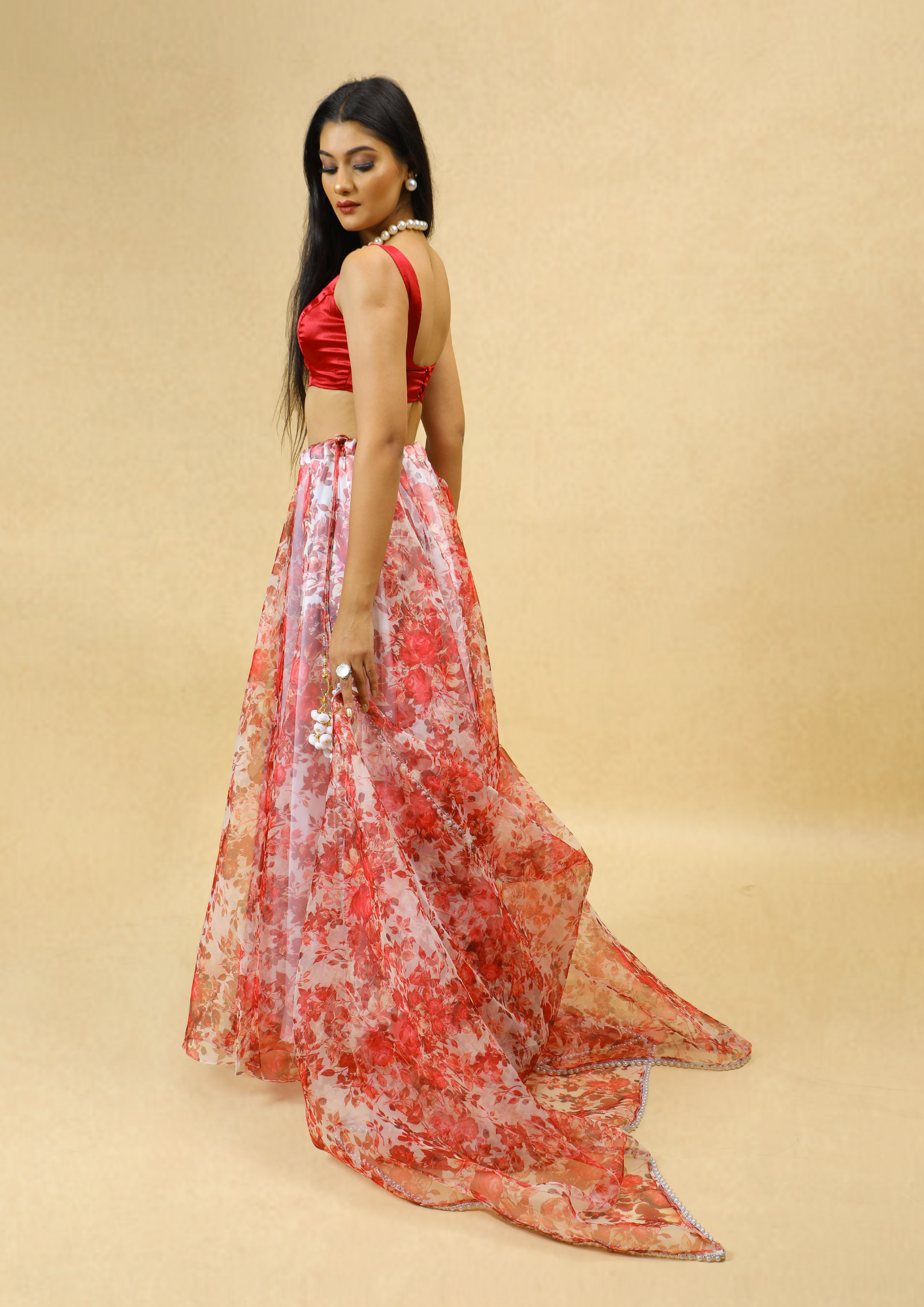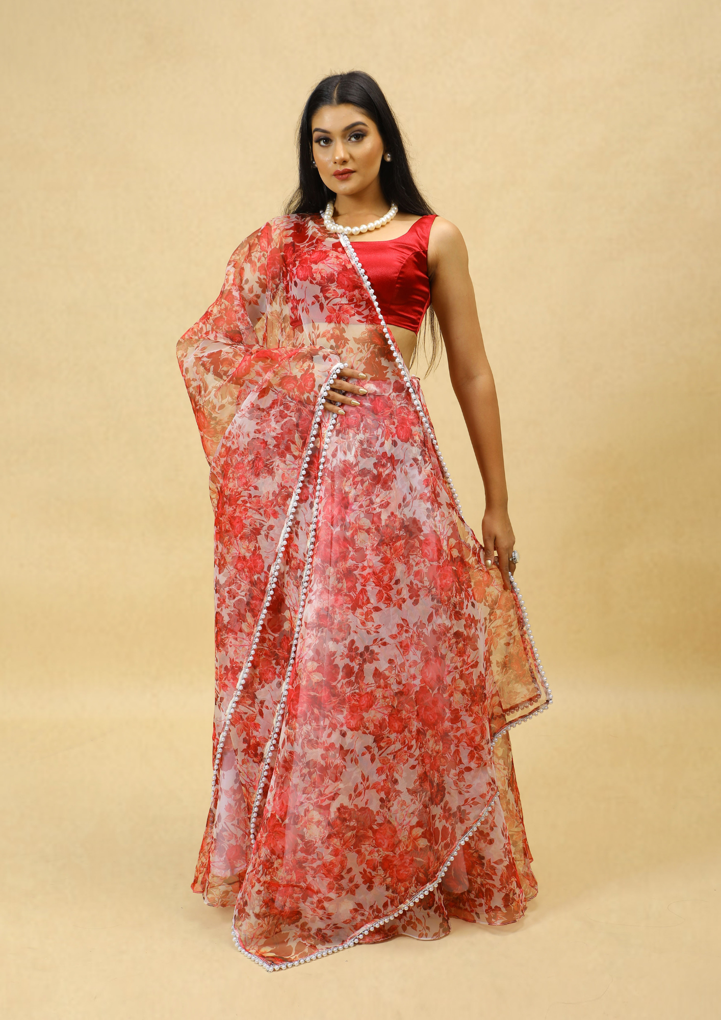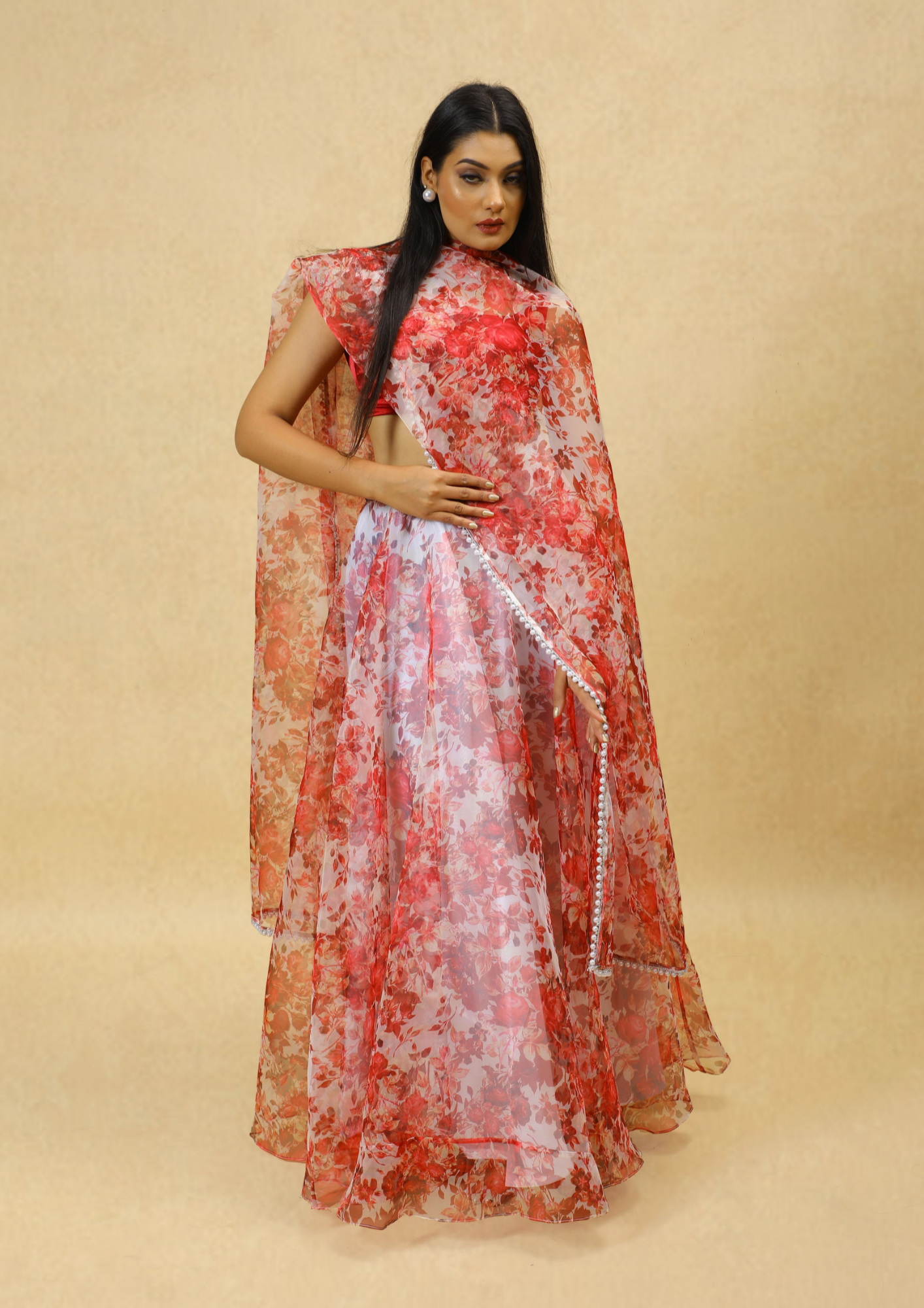 The Sora Organza Lehenga is a fairy-tale inspired garb that transports you into a world of soft-core dreaminess. Crafted with utmost delicacy, this lehenga is perfect for major Indian festivities like Haldi, Mehendi, Sangeet etc. Its subtle design and soft fabric can provide a touch of enchantment to any occasion. Handcrafted with precision and attention to detail, the ensemble allows comfortable movement, making it suitable for all body types. Indeed, a whimsical and ethereal wonder.